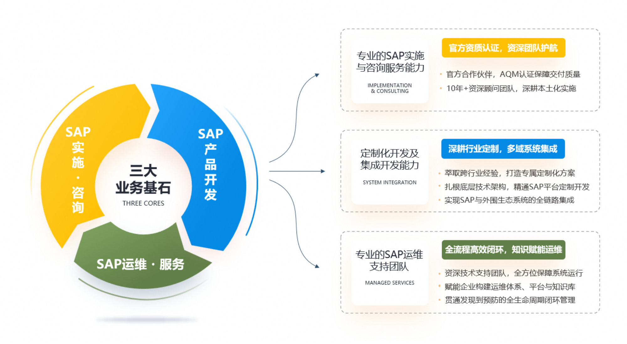 致力于提供‘实施、定制开发与运维’一体化的SAP闭环服务。由官方认证资深团队护航,定制本土化行业方案,打通异构系统无缝集成。交付后赋能企业构建标准化运维体系,实现发现到预防的闭环管理,让数字底座坚如磐石。