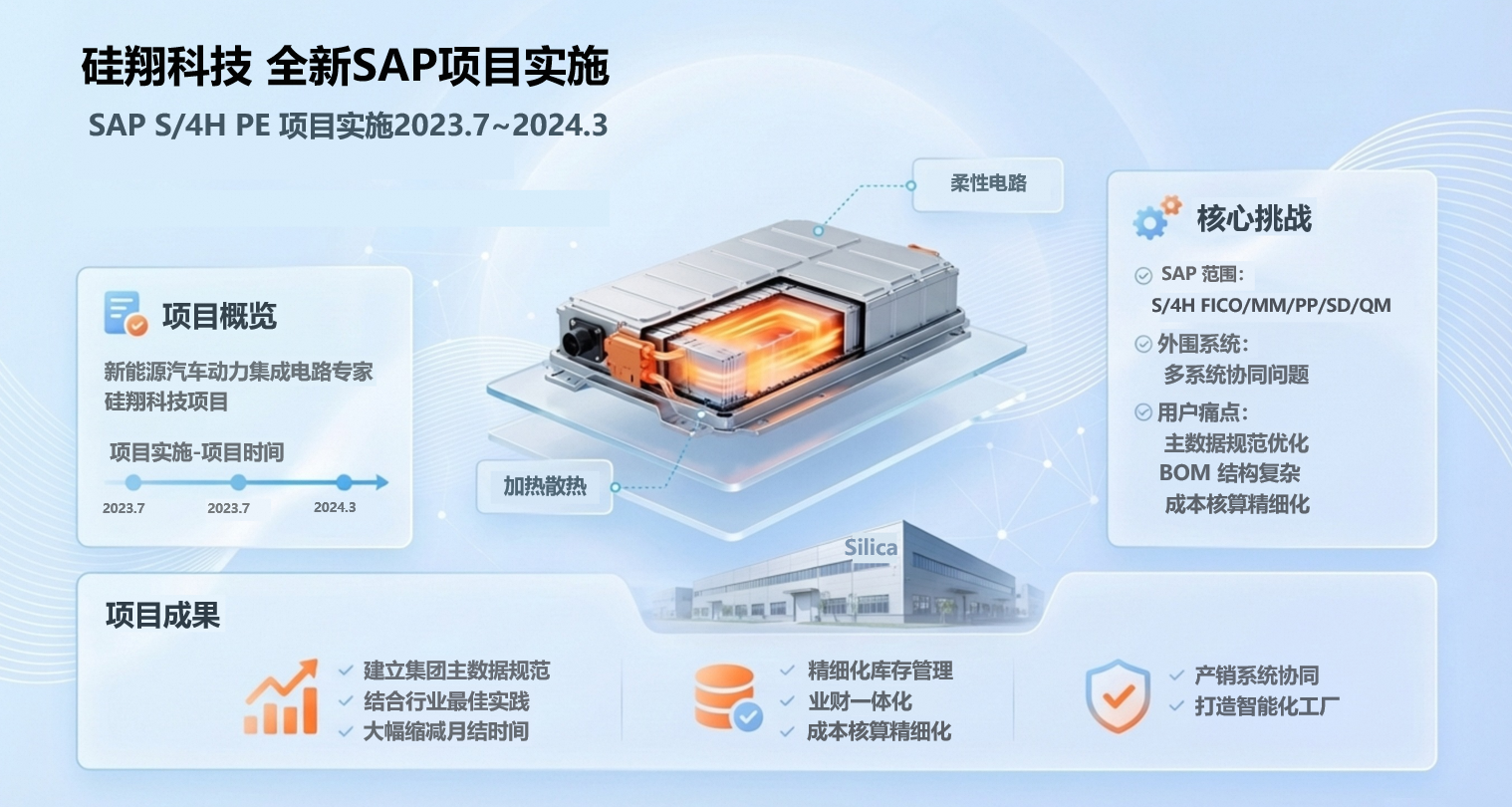在艾罗能源全球平台建设中,项目深耕 SAP S/4HANA 全模块应用, 成功构建了支撑全球业务的数字化中枢。凭借主数据标准的统一与替代料模型的重塑,彻底消除一物多码痼疾,打通产供销全球协同体系。在实现全球节点实时可视的同时,赋能企业由流程乱象迈向规范运营,筑牢全球化数智底座。